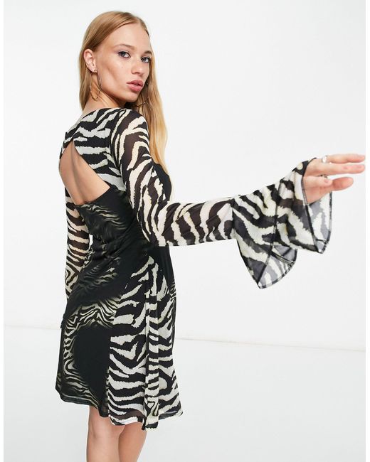Asos Mini Dress With Flare Sleeve In White Lyst Uk